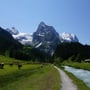 Während ich weiter durch lichte Wälder und üppige Wiesen schreitete, reckte sich mein Hals oft um die wilden Engelhörner zu bestaunen, die ihre bleichen Felszähne in den Himmel bohrten. Da oben klettern wäre bestimmt auch spassig! Ganz klein und zerbrechlich kam man sich da vor. Um die gewaltigen Felsflanken von Well- und Wetterhorn drapierten sich zerrissene Gletscherströme und dazwischen haben stürmische Wasser die tiefe Gletscherschlucht der Rosenlaui geschaffen.