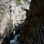 Ganz im Kontrast das liebliche Hochtal zu Füssen, welches sich bis zur Schwarzalp zieht und über die Grosse Scheidegg eine Verbindung zwischen Meiringen und Grindelwald schafft. Es schien, seit Nietzsche, Goethe und Conan Doyle hier gewandert sind, hat sich nichts geändert. Noch immer trotzte die nostalgische Jugendstilfassade des Hotels Rosenlaui unter den gleissenden Gletscherströmen des herabfliessenden Rosenlauigletschers den Wettern, wo die Herrschaften einst kurten, auftankten und sich von der Natur inspirieren liessen. Noch immer entströmte den Räumlichkeiten das Flair der Jahrhundertwende. Natürlich musste ich auch hier Halt machen und bei einem guten Fitnessteller die Stimmung geniessen. Anschliessend besuchte ich die Gletscherschlucht Rosenlaui, in welcher sich ein eindrucksvoller Pfad neben den spritzigen Wasserfällen und Grotten durch die Steilwände nach oben schlängelte.