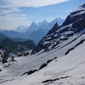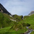 Ich bin die Strecke schon einmal abgestiegen und wusste um deren Länge. Doch heute kam mir der Abstieg noch länger vor. Oder lag es an dem feucht-warmen und regnerischen Wetter? Einzig das herunterrutschen auf den Schneefeldern lenkte mich ein wenig von den schmerzenden Füssen ab.