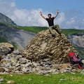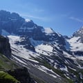 Ich meinerseits stieg gemächlich aber kontinuierlich hinab zum Schweizer Weltwunder Nummer 77: den Oeschinensee. Er wird umrahmt von einem imposanten Felsenkessel mit gewaltiger Gebirgskulisse. Senkrechte Felswände bäumen sich von seinen Ufern auf zu den vergletscherten Gipfelspitzen von Blüemlisalphorn, Oeschinenhorn, Fründenhorn und Doldenhorn.