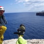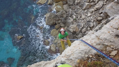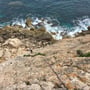 Erst als mir beim Abseilen die Felswand fünf Meter entfernt war, und ich in der Luft rund 100 Meter über dem Meer hing, sah ich die richtige Abseilroute. Sie befand sich etwa fünf Meter links von mir. Tja, nun war es schon zu spät; ich wollte nicht mehr hoch prusiken und hoffte, mit dem Seil einen weiteren Stand in der Route Little Nose zu erreichen.