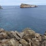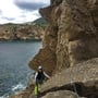 Doch wie so oft kam es anders. Die Anreise nach Puerto de San Miguel verlief problemlos. Wir Parkten das Auto nach einigem Überlegen auf dem Verbindungsdamm zur Halbinsel Isla de Bosc und marschierten westwärts über grosse Felsbrocken dem Wasser entlang. Erst unterwegs wurde mir klar, dass dieser Zugang nicht wir ursprünglich gedacht zur Abseilstelle führte, sondern von unten an den Sektor führte.