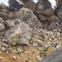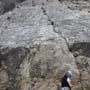Nix, da. Langsam aber gekonnt kletterten wir über die verschiedenartigsten Felsbänder nach Westen. Die Vielzahl des Felsgesteins war einmalig. Leider kannte ich die meisten davon nicht, aber über Sand-, Kalk-, Lava-, Kristallgesteine etc. war alles dabei. Immer wieder sahen wir auch Fossilien in den Gesteinsmassen welche an das Leben lange, lange vor unserer Zeit erinnerte.