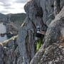Die Abseilstelle der Route Schmiedelino fanden wir problemlos und die Stände sowie auch die Absicherungen waren in top Zustand (Erschliessung zwischen 2005 und 2012)! Leider blieb unser Seil aufgrund der scharfkantigen Felsen gleich beim ersten Mal Abseilen hängen, sodass ich wieder hinaufklettern musste um es zu lösen.