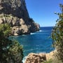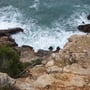 Mit unserem Toyta Yaris fuhren wir die teilweise steile Strasse bis zum Grossen Parkplatz auf dem sogenannten Cap Creu. Hier folgten wir einem schmalen Pfad auf dem Bergrücken und gelangten anschliessend über spitzige und ebenso scharfe Felsbrocken durch Dickicht zum Felsabbruch. Dabei wiesen uns willkommene Steinmännchen den Weg.