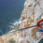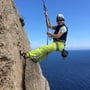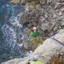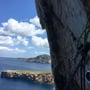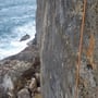 Nach gut 20 Minuten erreichten wir den Felsfuss. Die ersten zwei Seillängen kletterten wir noch im Schatten, doch dann standen uns alleinig die Routen im prächtigsten Sonnenschein zur Verfügung. Unter uns preschten die Wellen in die Brandung und gaben unserem Klettern einen ganz besonderen Touch, der schon fast bedrohlich war.