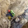 Als die Route erfolgreich gemeistert worden war, suchten wir sehr lange nach der Abseilstelle der Route Little Nose. Doch wir fanden nur den Stand der Route Futorama bzw. ein paar rostige Hacken welche nebenan irgendwo hinführten? Der Stand der Futorama war zum Abseilstand jedoch nicht eingerichtet, weshalb wir einen Karabiner und Schlinge montierten, welche wir später wieder abholen würden.