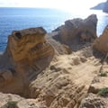 Den späteren Nachmittag genossen wir am sonnigen Hippie-Plätzchen, wo schon diverse Aussteiger ihren Frieden suchten. Das ibizenkische „Atlantis“, d.h. das einige Höhlen der Umgebung in den 1970er-Jahren von Hippies „bewohnt“ wurden. Speziell aus dieser Zeit stammen Graffitis und Felsschnitzereien. Die Steinmännchen überall gelten als Glücksbringer. Berühmt wurde die (von einem Japaner in einer Höhle) in einen Fels geritzte Buddhafigur, der Sa Pedrera die Bezeichnung Punta de Buddha, verdankt.
