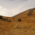 Vorbei an Bimssandhängen sahen wir schon bald die Huevos del Teide (die Eier des Teide). Grosse, schwarze, runde Lavasteine, die alleine als Findlinge imposant in der Landschaft liegen.