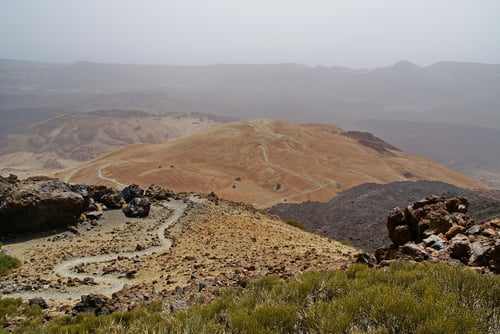 Vorbei an den Roques de Garcia und an der Teleferico parkten wir das Auto an der Cañadas Strasse (TF-21) bei km 40. Hier startete die gut vierstündige Wanderung mit 1300 Höhenmetern, welche anfangs auf einer Schotterpiste entlang sich langsam den Berg hinaufwindete.
