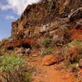 Immer wieder fasziniert über die Baukunst des Weges, gelangten wir langsam nach oben. Links und rechts des Pfades befanden sich natürliche Höhlen, säumten sich Kakteen oder beeindruckte uns die verschiedenfarbige Lavaerde.