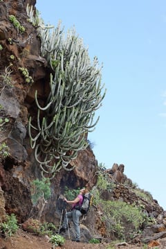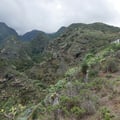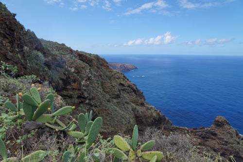 Die Etappe startete bereits spektakulär mit dem Abstieg in den riesigen Barranco de la Luz. Links und rechts des Canyons befanden sich natürliche Vulkanhöhlen, in welchem sich Ziegen, Schafe oder geschützte Lagerräume befanden. Was für ein fremdes Bild für uns. Staunend wanderten wir auf dem Pfad entlang riesiger Kakteen durch den tiefen Schlund zum anderen Ende der Schlucht.