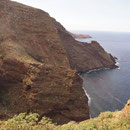 Lange suchten wir den Wanderparkplatz unterhalb des Mirador de los Andenes. Dieser sollte das morgige Etappenziel darstellen und hier stellten wir den Opel Corsa schliesslich ab. Erstaunt über die schlechte Qualität der Strasse fuhren wir schliesslich auf einer in der Karte „weiss“ eingezeichneten Strasse steil der LP-109 entgegen, welche eine Abkürzung zur vorher gefahrenen Strasse darstellte. Mit zunehmender Distanz, wurde die Strasse immer schlechter. Wir befanden uns in der Zwischenzeit nur noch auf einem ungeteerten Steinweg, der in engen Kurven nach unten führte.