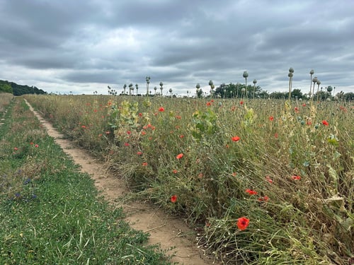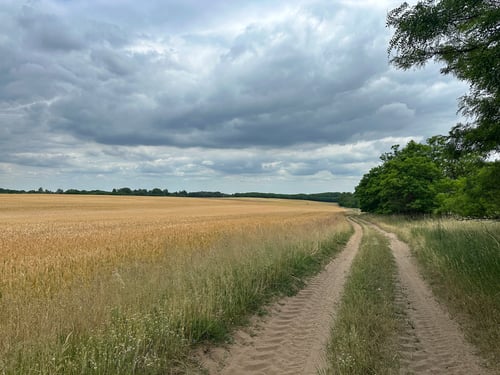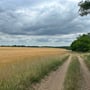 Die heutige Etappe gab alles her, was sich ein Wandersmann vorstellen kann: Teerstrasse, Feldweg, hohes Gras, Brennnesselfelder, äusserst anstrengende Pfade auf Sandpisten, Lehmböden in den Wäldern, abgemähte Felder, Dickicht mit und ohne Spinnennetze. Angetroffen hatte ich ausserhalb der Ortschaften keine Menschenseele.